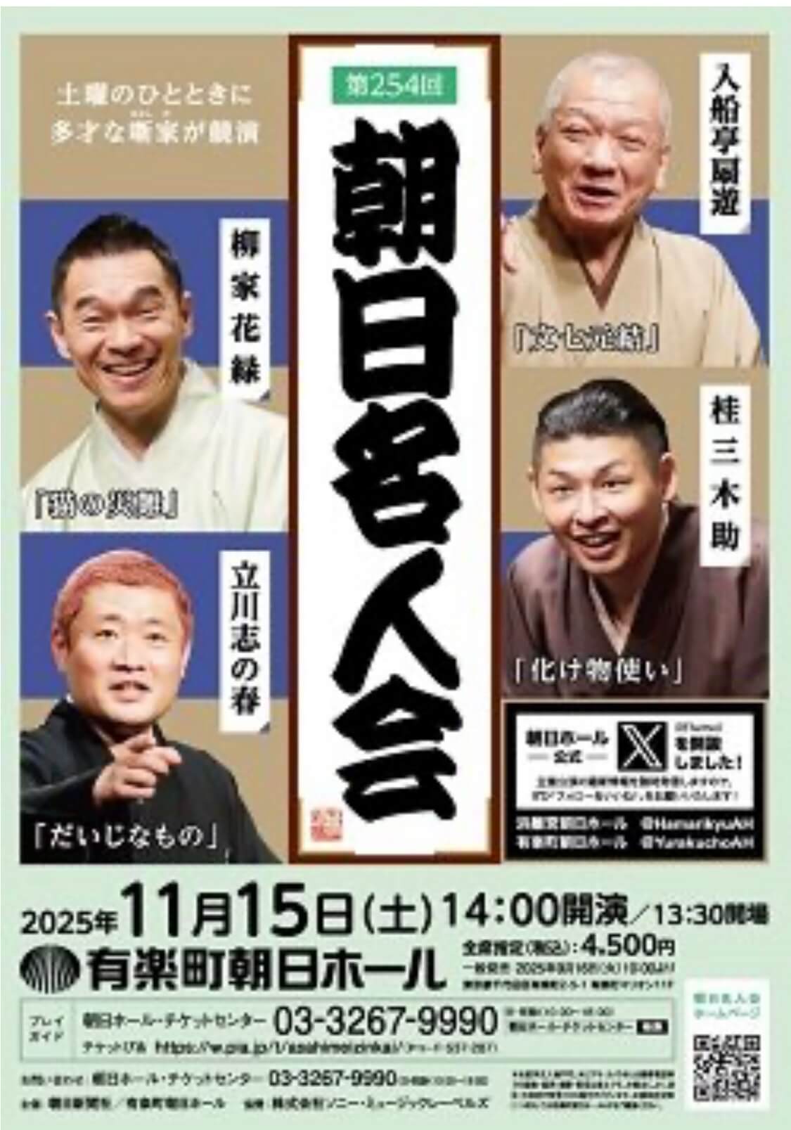 出演 | 立川志の春、柳家花緑、桂三木助、入船亭扇遊 |